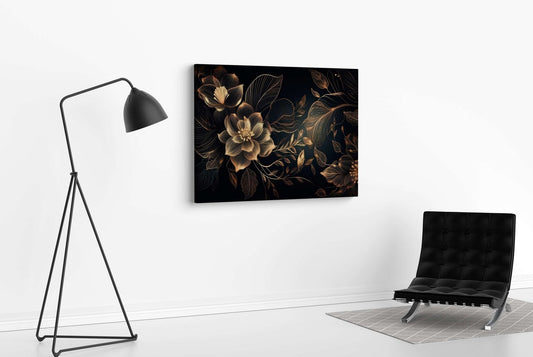 Luxury Black & Gold Canvas Painting Elegant Floral Art for Living Room Wall