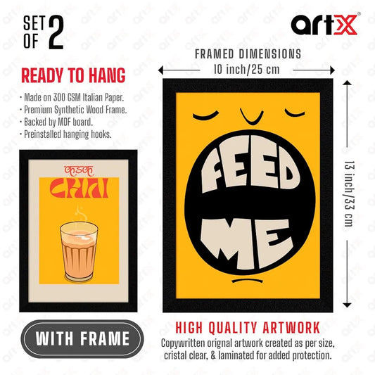 meArtX Paper Kitchen Dining Area Cafe Bar Restaurant Funny Framed Quotes Feed Me Set of 3