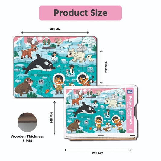 Mini Leaves 24 Piece Puzzle for Kids | Polar Adventure Jigsaw Puzzle | Wooden Puzzles for Kids | Educational Toys