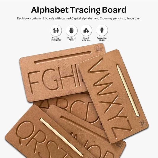 Mini Leaves Alphabet Tracing Board Wooden Board With 2 Dummy Pencils | Tracing Letters for Kids Toddler Writing Tools for Beginners