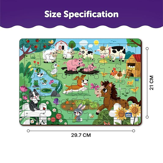 Mini Leaves Farmyard Animals Wooden Jigsaw Puzzles | Eco-friendly Wooden Toy | Puzzle Set for Kids | Multicolor | 35 Pieces