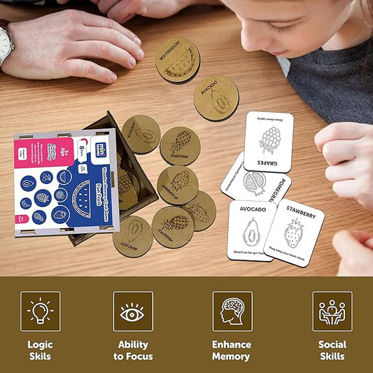 Mini Leaves Fun Fruits Wooden Memory Card Game for Kids | Fun Fruits Puzzle Set | Pattern, Color Matching Toy