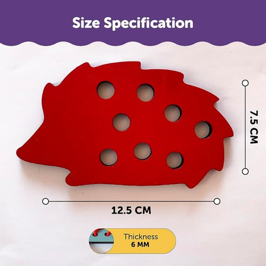 Mini Leaves Lacing Activity for Kids | Wooden Lacing Toys for Toddlers | Preschooler Educational fine Motor Skill Toys | Hedgehog