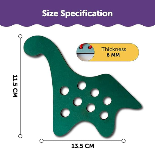 Mini Leaves Lacing Activity for Kids | Wooden Lacing Toys for Toddlers | Preschooler Educational fine Motor Skill | Dinosaur