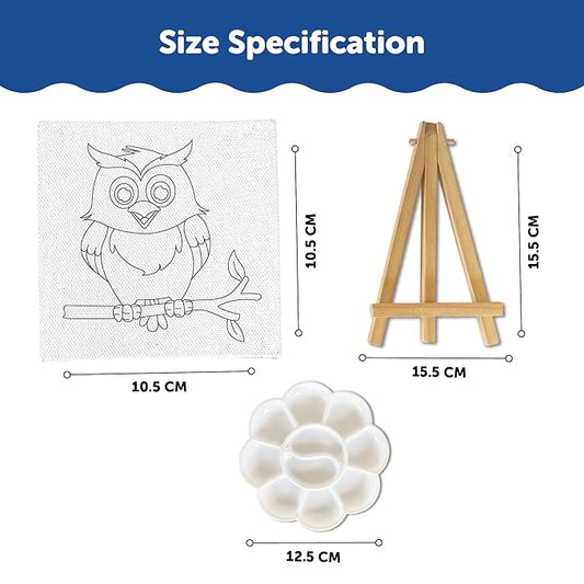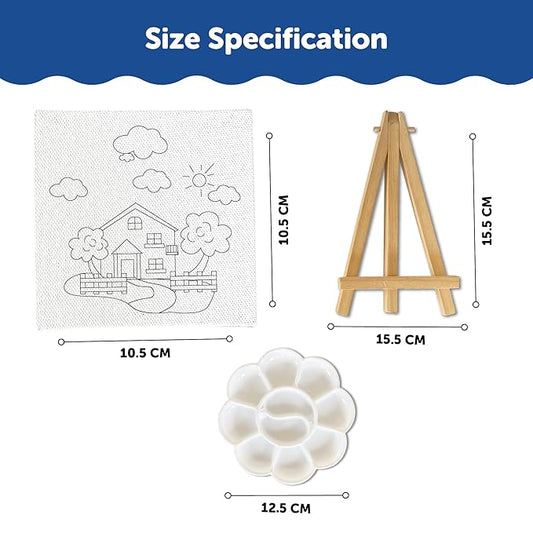 Mini Leaves Mini Canvas Art and Craft Paint Kit Diy Kit With Wooden Easel, Colours, Painting Brush for Girls Boys 4-6 Years | Set of 4