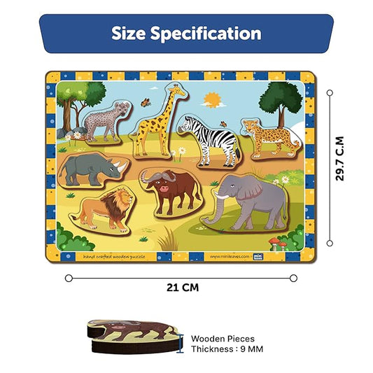 Mini Leaves Wooden Chunky Puzzle (2+ Years) - Learning Puzzle Toy Preschool Education Gift for Boys and Girls Wild Animal
