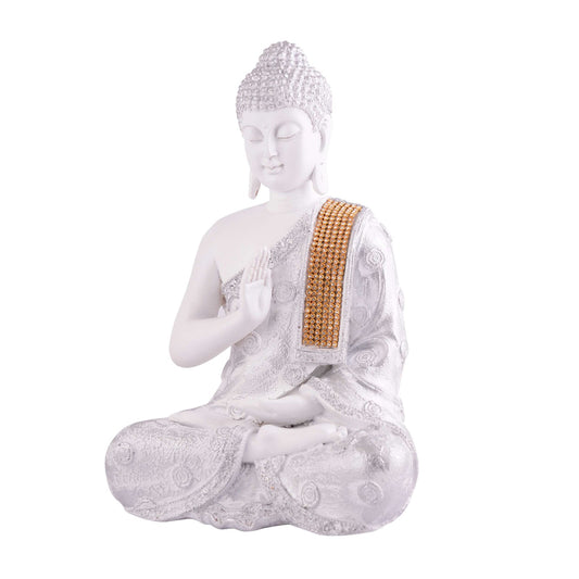 Minimalist Buddha Statue in White Resin Idol with Diamond Robe Detailing for Peace & Positivity