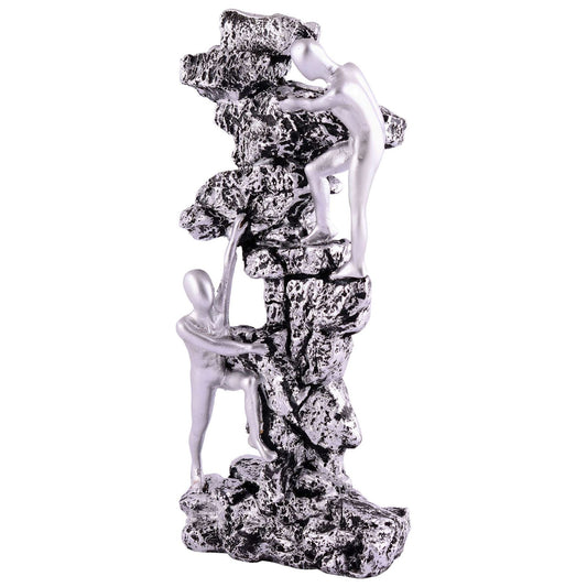 Motivational Mountain Climbing Statue Dual Figurine on Rugged Rock Formation Symbol of Support Modern Art Form