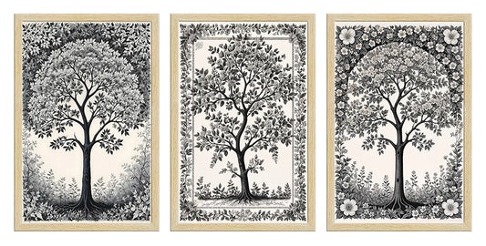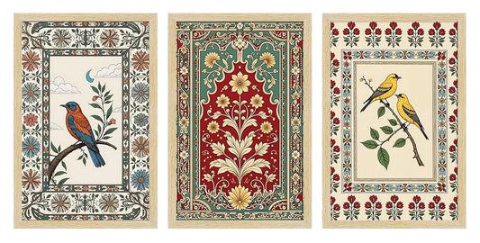 ArtX Paper Madhubani - 04 Floral Paintings with Frame Set of 3