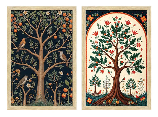 ArtX Paper Madhubani Floral Art Paintings with Frame Flowers - 05 Set of 2
