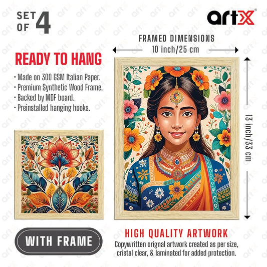 ArtX Paper Madhubani Madhubani-SO4-05 Paintings with Frame Set of 4