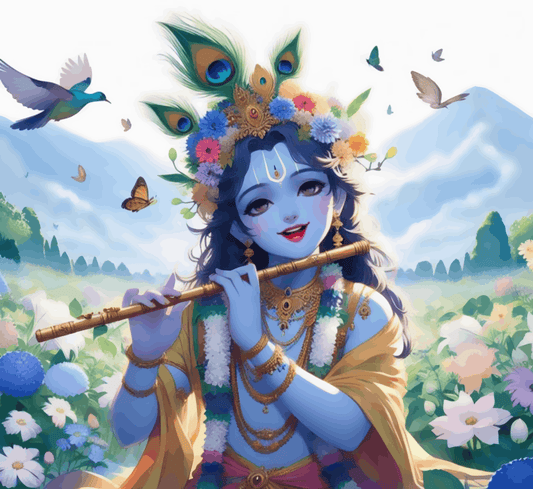 Paint Waint Shree Krishna Playing Flute Surrounded by Nature Janmasthami