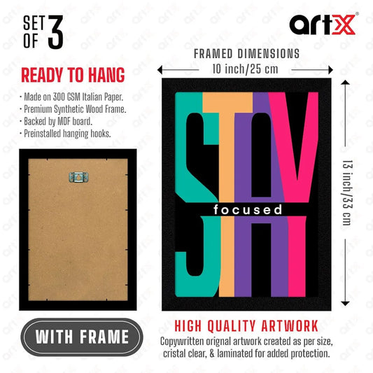 ArtX Paper Never Settle Motivational Quotes Wall Frames Set of 3