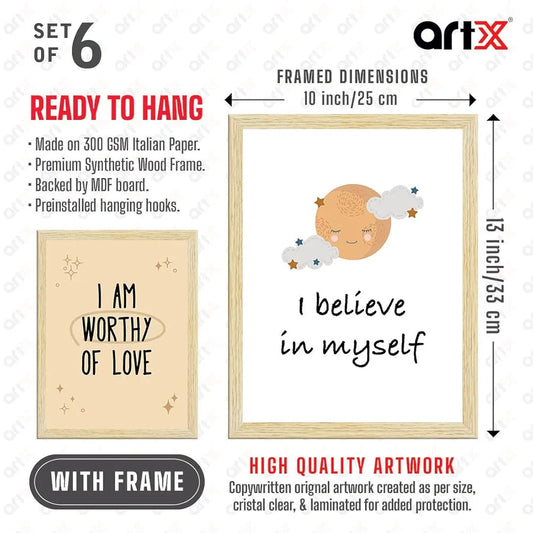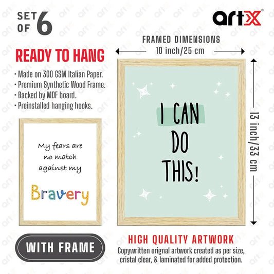 ArtX Paper Motivational-05 Quotes Wall Paintings for Kids Room Inspirational Multicolor Set of 6