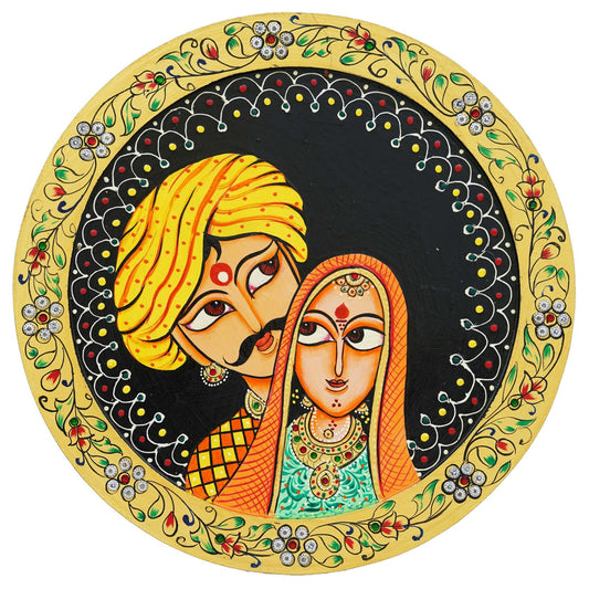 Pichwai Painting on Wall Hanging Plate Beautiful Rajasthani Man & Woman Pichwai Plate