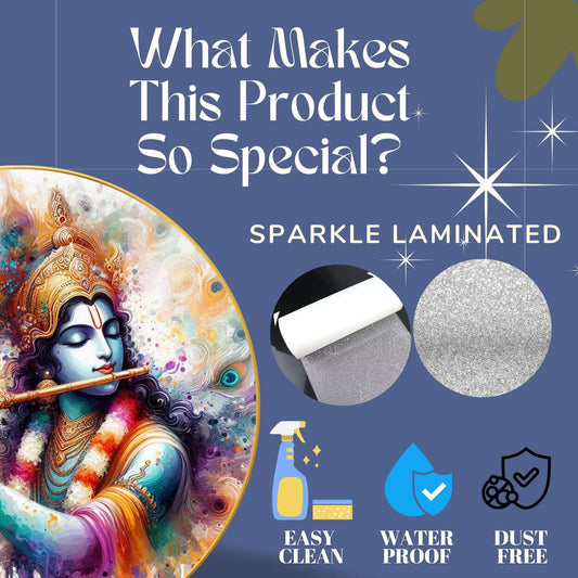 Peacock Feather Krishna Wall Decor Serene Spiritual Art with Gold & Blue Tones for Home