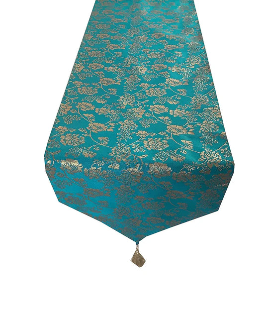 Pink Parrot Dopian Silk Sea Green Colour Table Runner