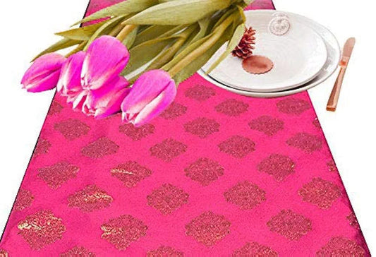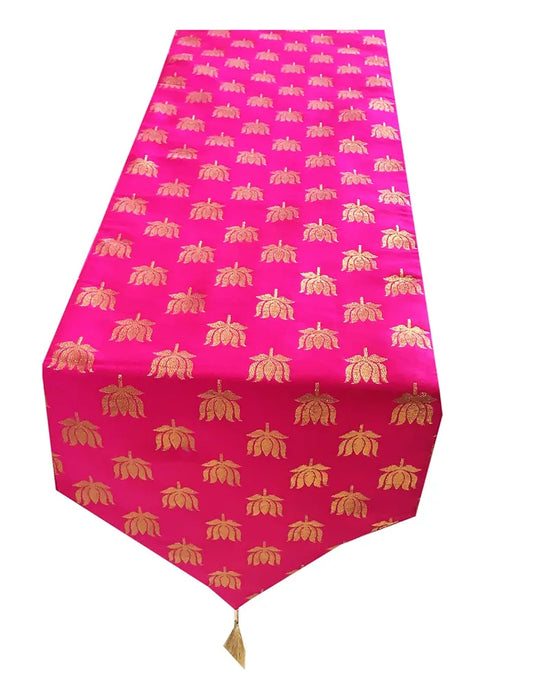 Pink Parrot Jute Silk Table Runner Colour Pink