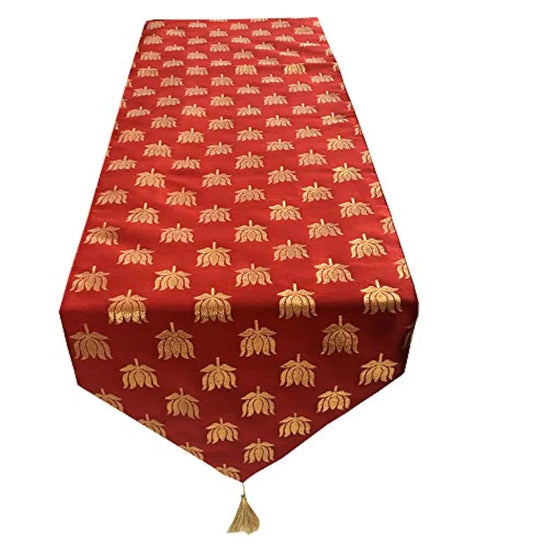 Pink Parrot Jacquard Silk Table Runner Colour Red