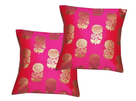 Pink Parrot Self Flower Pattern Design Jacquard Square Cushion Cover Colour Pink (Pack Of 2)