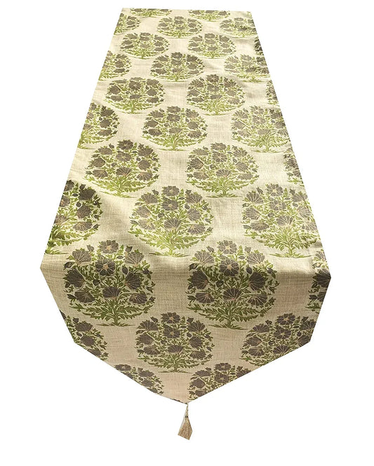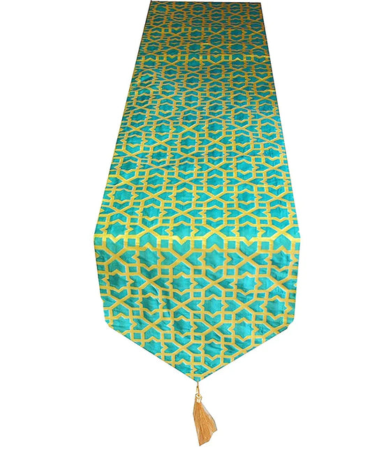 Pink Parrot Vireo Art Silk Jacquard Table Runner Colour (Sea Green)