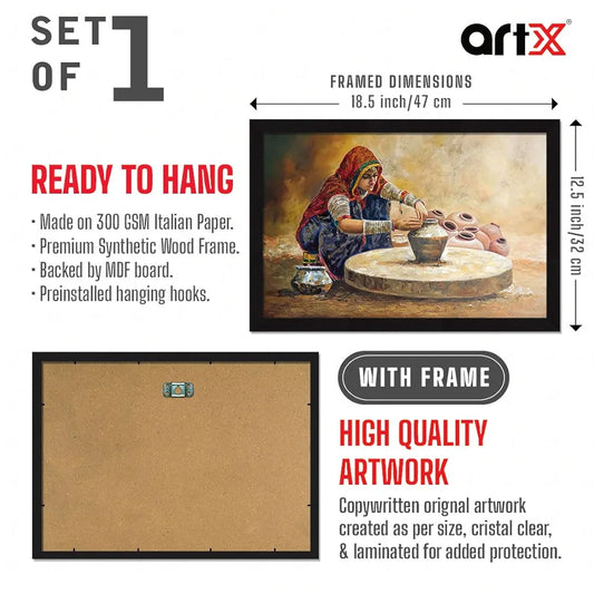 ArtX Paper Rajasthani Village Women Framed Wall Art Painting
