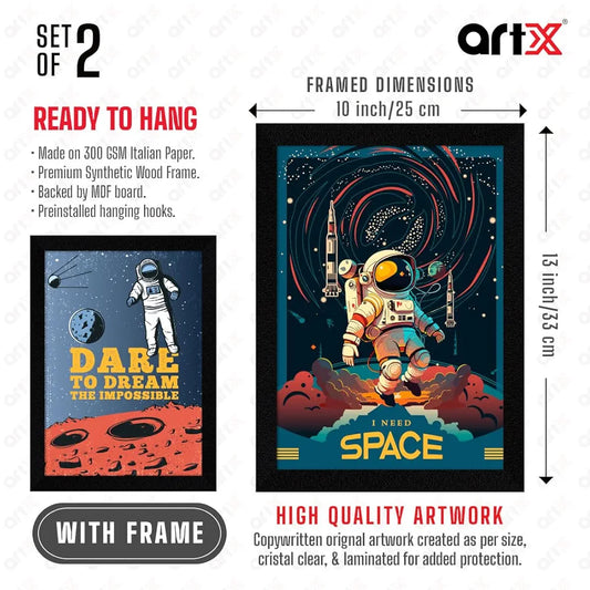 ArtX Paper Science Space Motivational Wall Frames Motivational Framed Posters A4 Set of 4