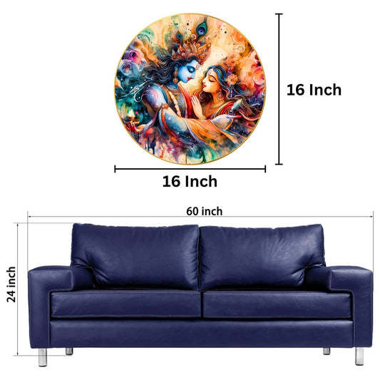 Romantic Radha Krishna Golden Round Frame Circular Wall Art Enchanted Forest Design