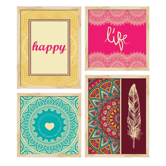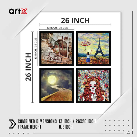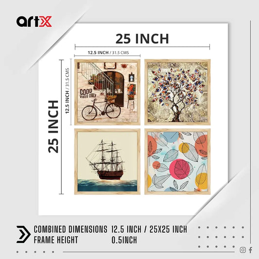 ArtX Paper Vintage Abstract Big Wall Art Frame Painting Multicolor Set of 4