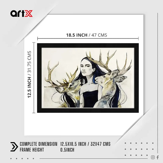 ArtX Paper Watercolor Stag Qween Framed Wall Art Painting Set of 1