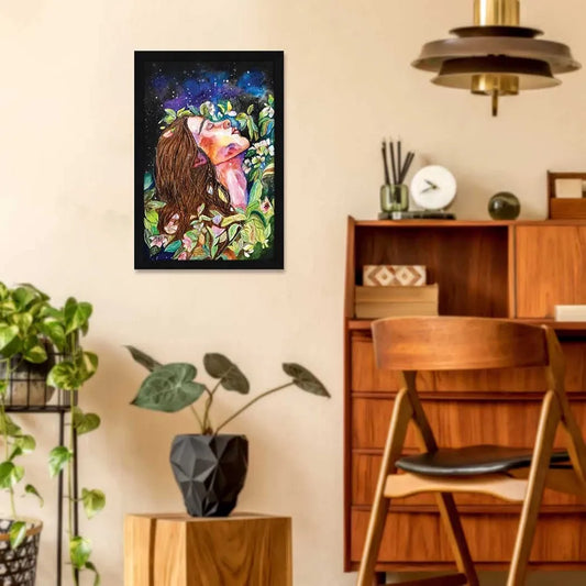 ArtX Paper Watercolor Queen of Flowers Women Framed Wall Art Painting Set of 1