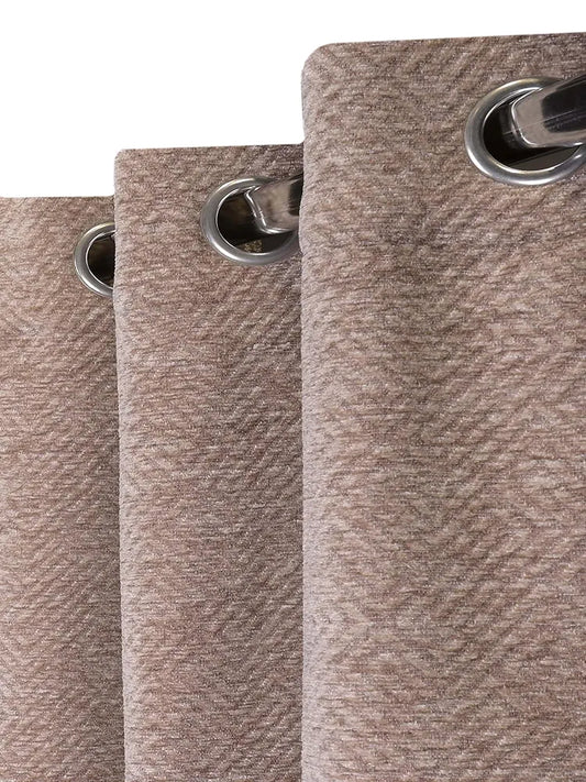 Saral Home Beige Pacman Chenille & Polyester Chevron Yarn Room Darkening Door & Windows Curtains (Pack of 2)