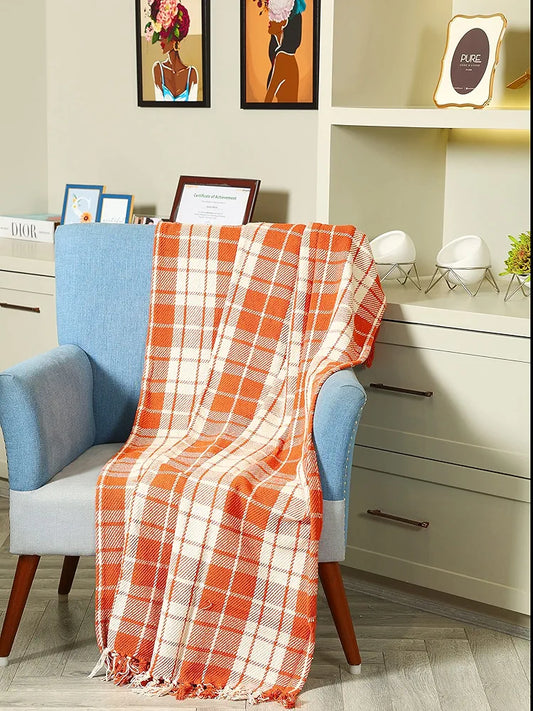 Sashaa World Plaid Blanket Throw Colour Orange & White