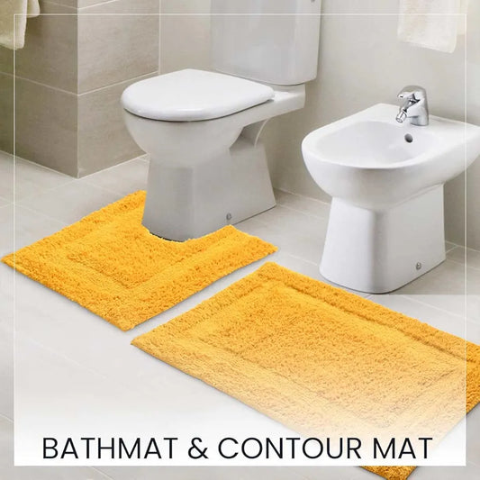 Sashaa World Solid Anti-skid Cotton Bathmat And Contour Set For Bathroom Colour Yellow