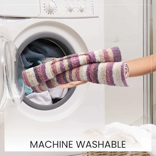 Sashaa World Striped Anti-skid Bathmat & Contour Set Colour Black White & Grey