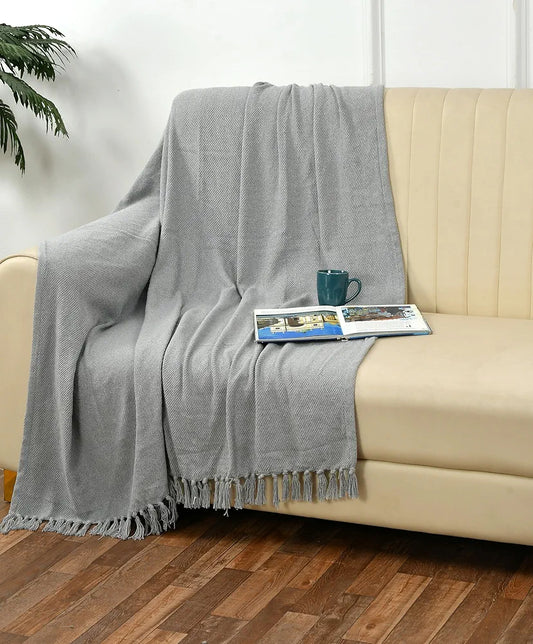 Sashaa World Solid Grey Cotton Throw Colour Light Grey