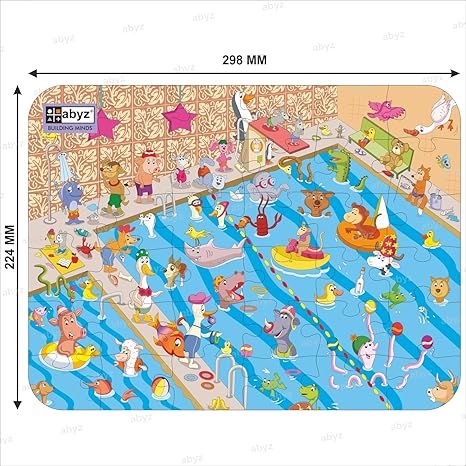 ABYZ Wooden Jigsaw Puzzles for Kids,Animal's Pool Party Jigsaw Puzzle for Kids of Age 4-6 Years 36 Pcs Puzzle