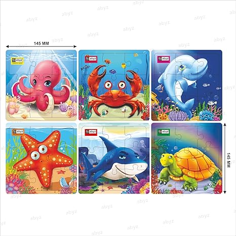 ABYZ Wooden Underwater Animal Jigsaw Games for Kids & Children Paperless Puzzle 9 Pieces (Set of 6)