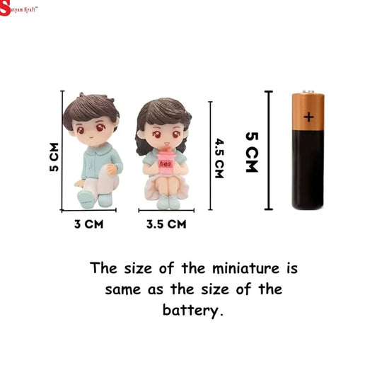 Satyam Kraft 1 Set Miniature Couple Figurines with Bench Cute Tea Time Resin Dolls