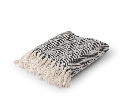 Sashaa World Zig Zag Super Soft & Breathable Cotton Throw Blanket Colour Grey/Black