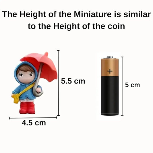 Satyam Kraft Resin 4 Pcs Miniature Cute Brother Sister Figurines with Open Umbrella