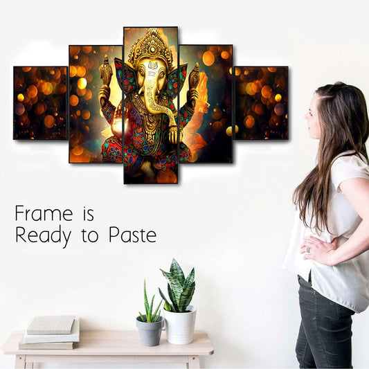 Bappa’s Blessings Luxurious 5-Piece Framed Ganesha Wall Decor Digital Wall Painting