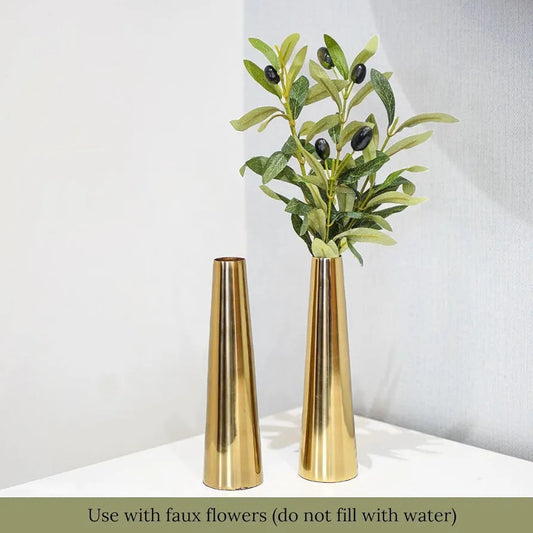 Behoma Golden Metal Slim Cone Flower Vase Small Flowers not Included