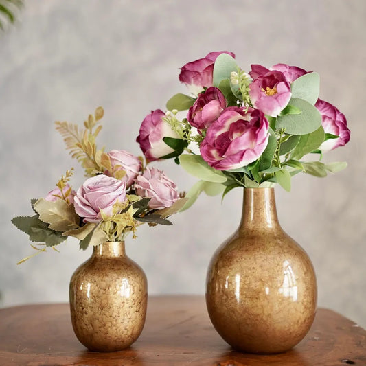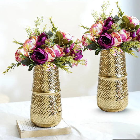 Behoma Matki Shape Metal Flower Vase Traditional Embossed Metal Flower Pot Golden Flowers not Included
