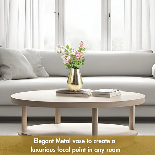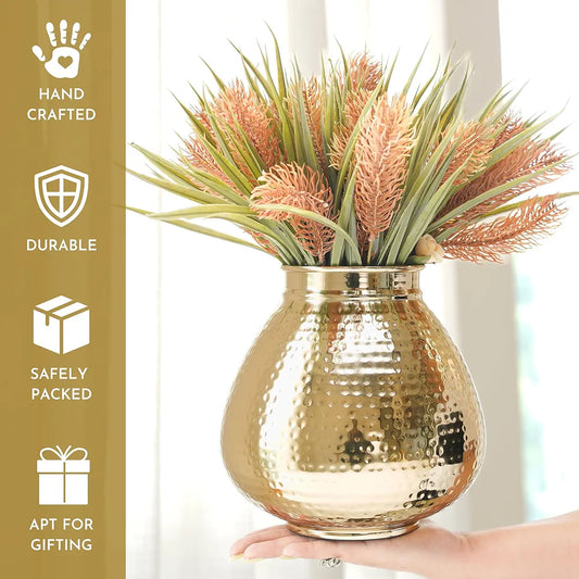 Behoma Matki Shape Metal Flower Vase Hammered Metal Flower Pot Golden Flowers not Included