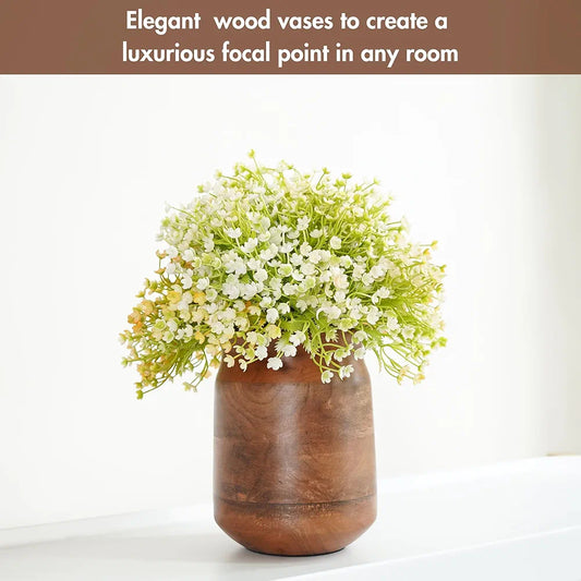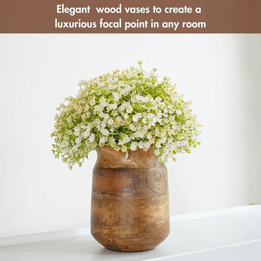 Behoma Flower Vase Jar Shape Mango Wood Vases Natural Light Brown Finish Flowers not Included