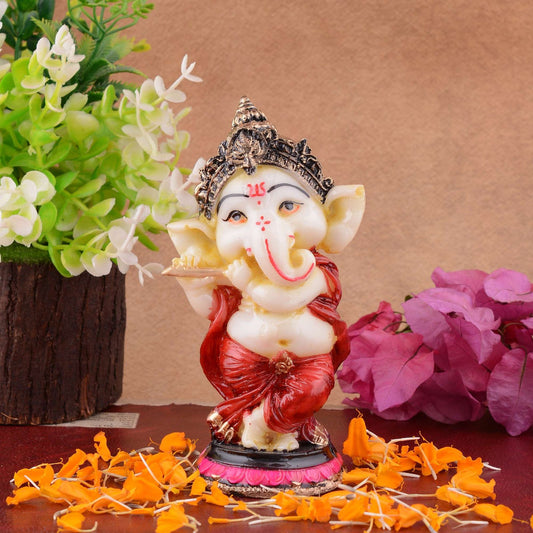 Beautiful Lord Ganesha Idol Playing Flute Decorative Ganpati Statue for Home Temple Office or Gifting Purpose