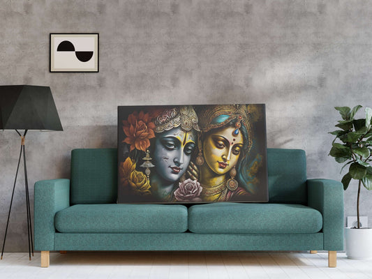 Beautiful Radha Krishna Wall Decor Artistic Close-Up Painting Ideal for Bedroom Living Room & Mandir