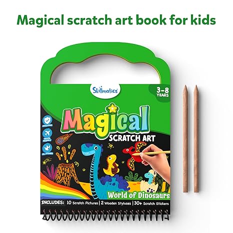 Skillmatics Magical Scratch Art Book for Kids Dinosaurs Craft Kits Activity & Stickers Gifts Ages 3 to 8