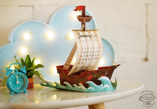 Sky Goodies Adventure Ship Desk 3D Calendar 2024 & 2025 DIY Paper Craft Kit